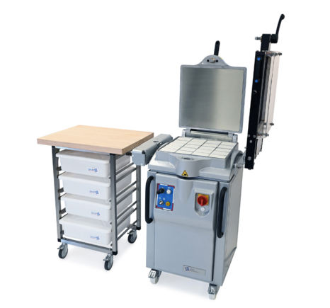 För mer känsliga degar, som surdeg eller kalljästa degar, är Robotrad-s ett smart val. Här kan du både dela och forma degen – helt utan tryck – genom att pressa den genom utbytbara sidgaller i olika former och storlekar.